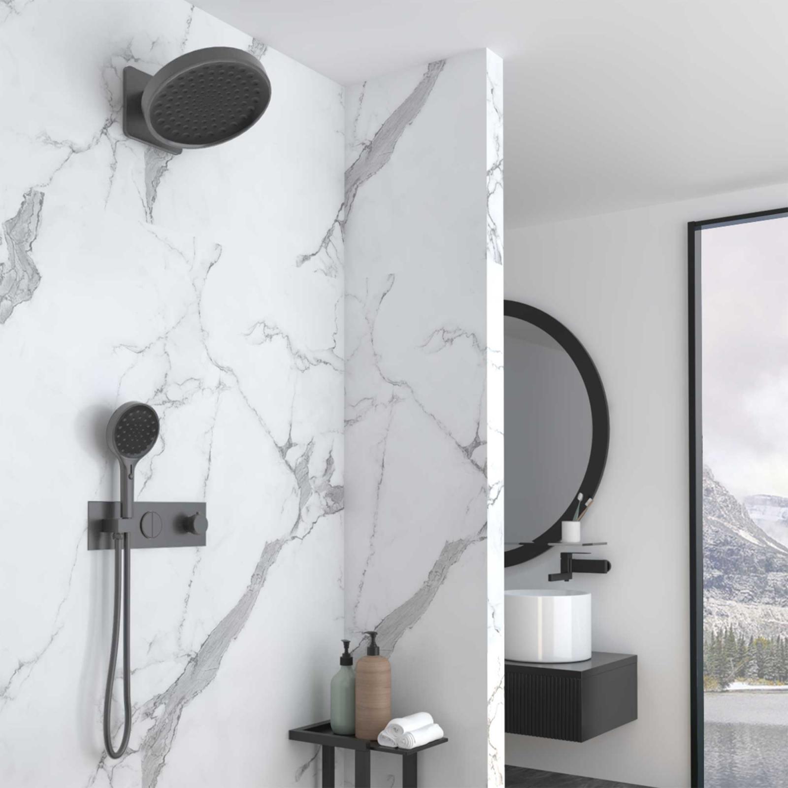 Душевая система для душа с термостатом Vincea VSFW-422TI3GM, вороненая сталь