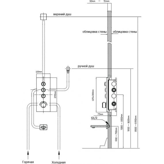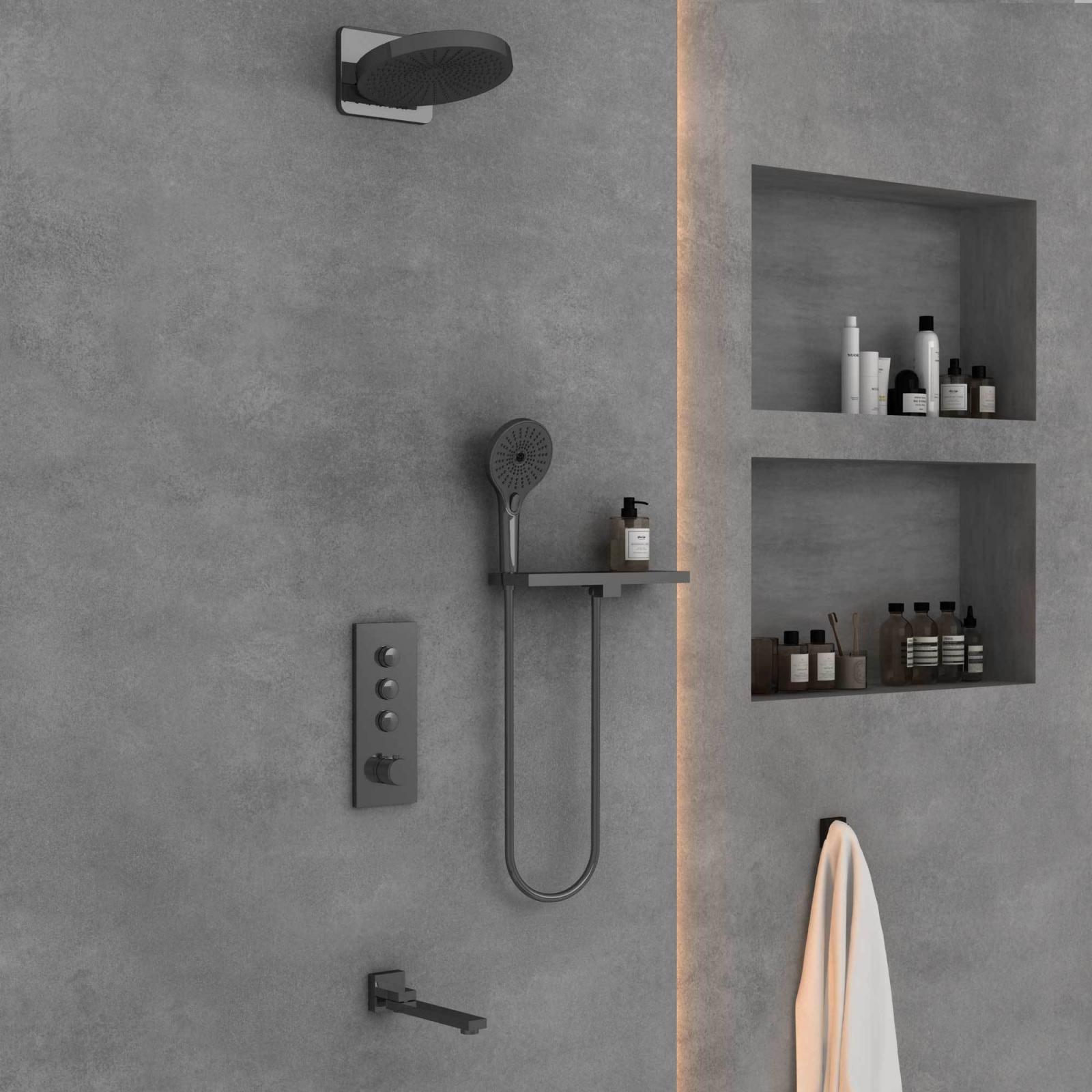 Душевая система для душа с термостатом Vincea VSFW-433TI1RGM, вороненая сталь