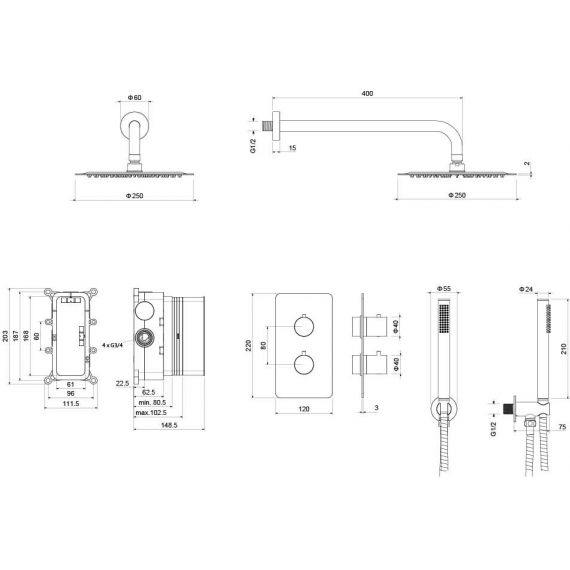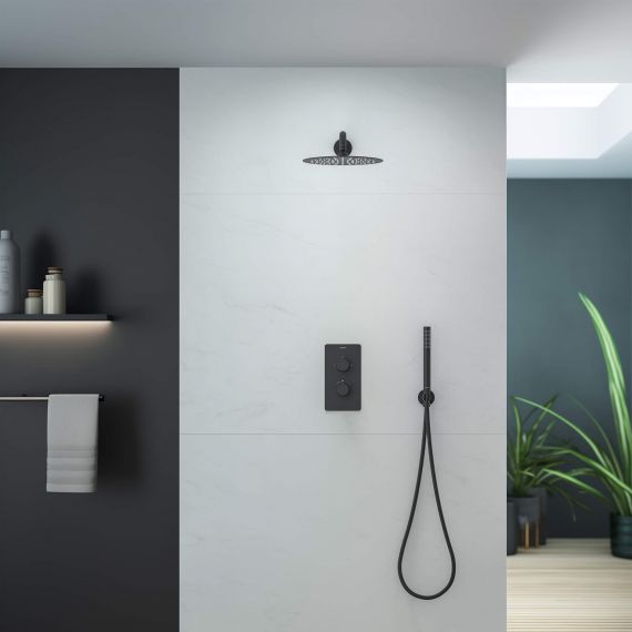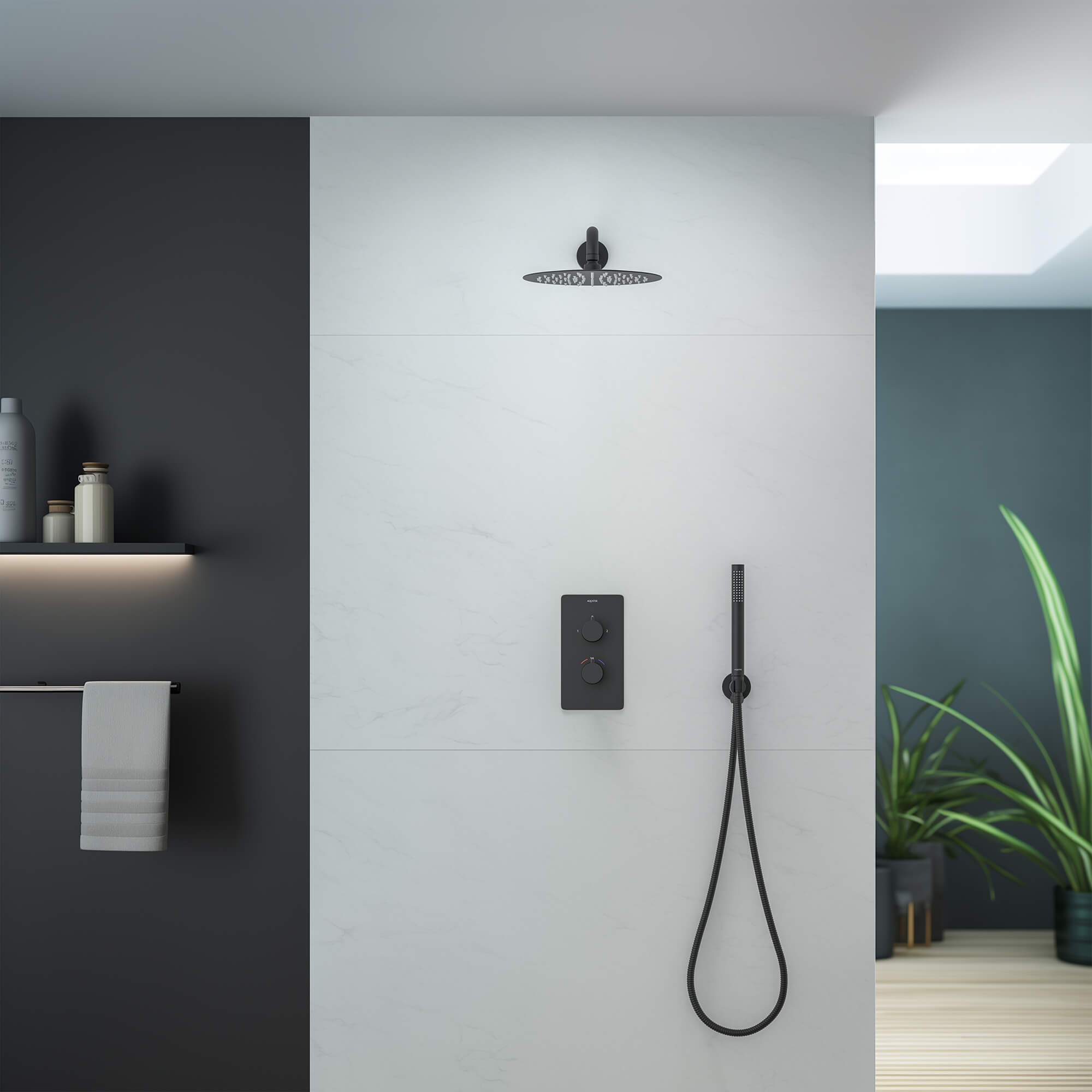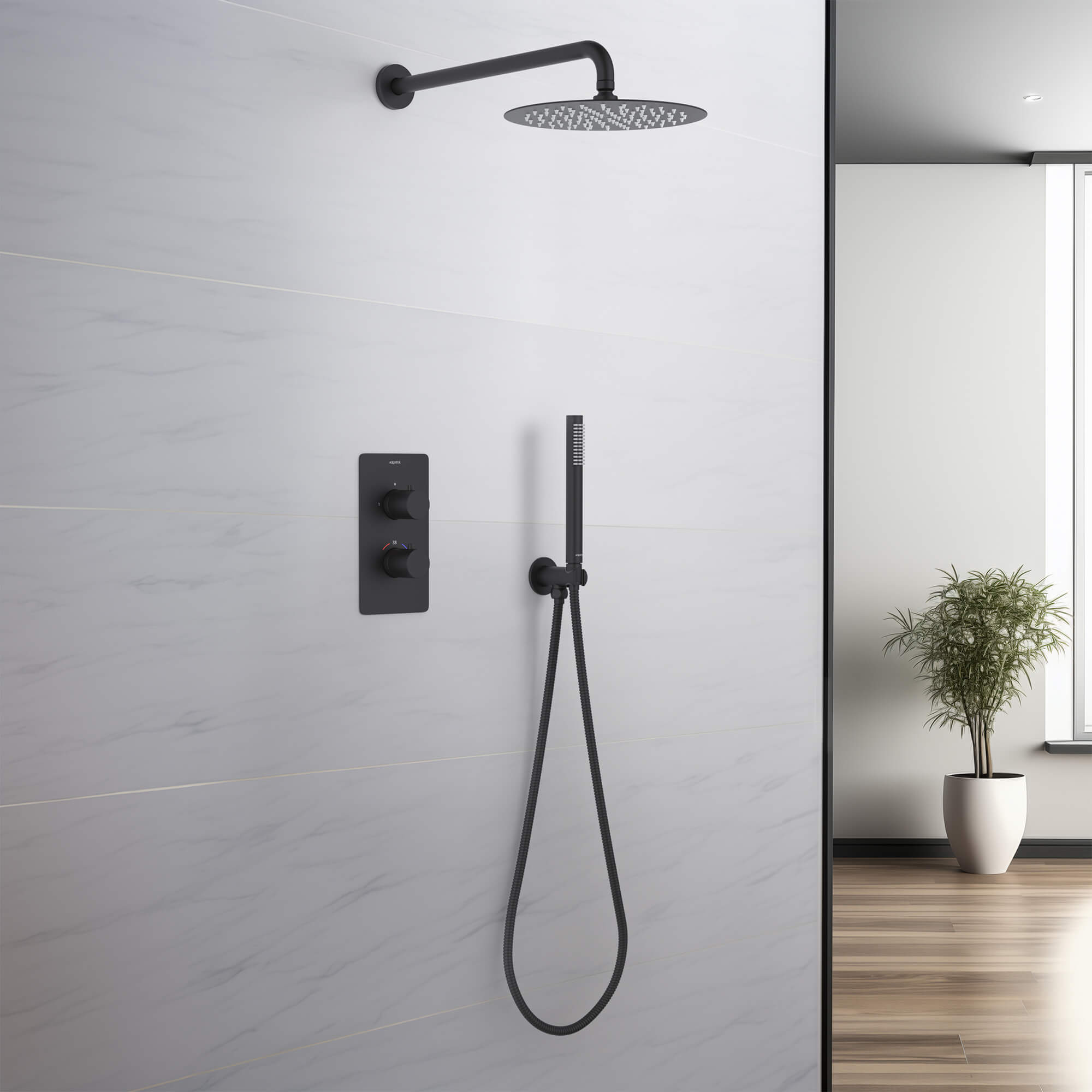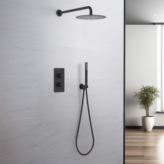 Душевая система для душа термостатом Aquatek Европа AQ1376MB (со скрытой частью) чёрный матовый