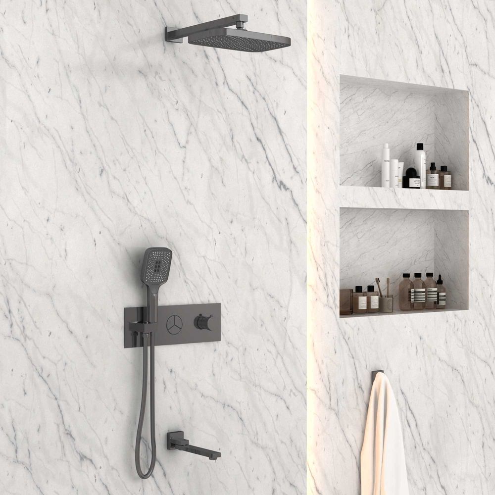 Душевая система для ванны с термостатом Vincea VSFW-432T1GM, вороненая сталь