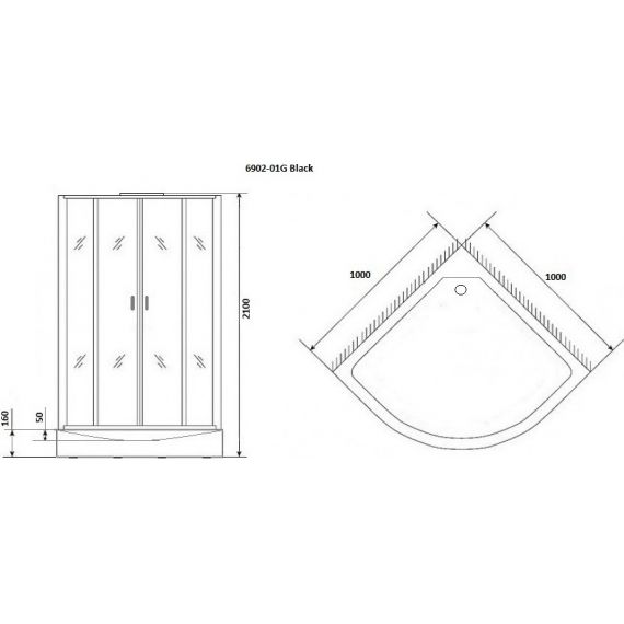 Душевая кабина Niagara NG 6902G-01 Black - без силиконовая сборка и 6 мм каленое стекло, черный профиль!