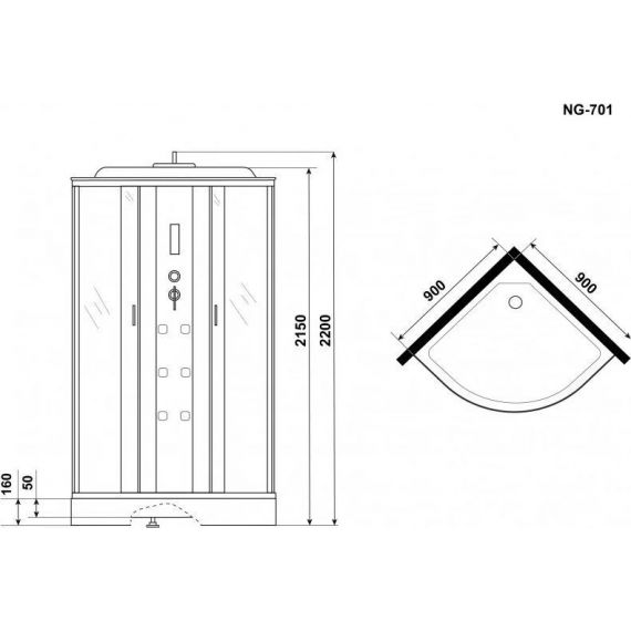 Гидробокс Niagara Ultra NG-701-01 90x90 см, хром/прозрачное/узор (безсиликоновая сборка)
