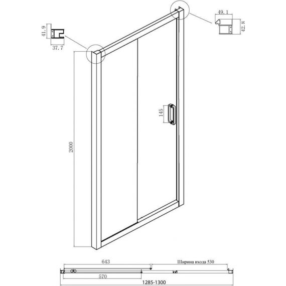 Дверь: одна раздвижная дверь, одно неподвижное стекло