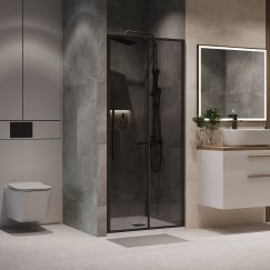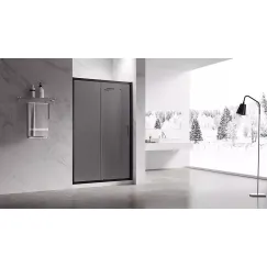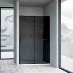 Душевая дверь Niagara Nova NG-85-9TB, размер 900xx1950 мм, профиль чёрный матовый, стекло тонированное. Габариты регулировки (885-915)x1950 мм, вход 355 мм.