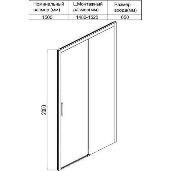 Душевая дверь Aquanet Pleasure, размер 1500х2000 мм. Профиль чёрный, стекло прозрачное 8 мм. Габариты регулировки (1480-1520)х2000 мм.