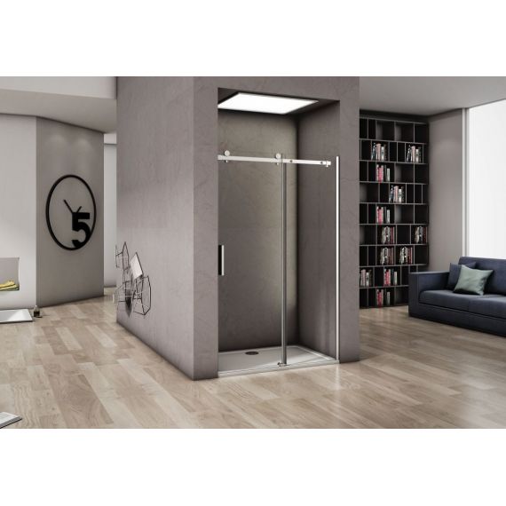 выполнены из 8-ти миллиметрового закаленного, безопасного стекла с подвижной дверкой на опорных плавных бесшумных подшипниках,