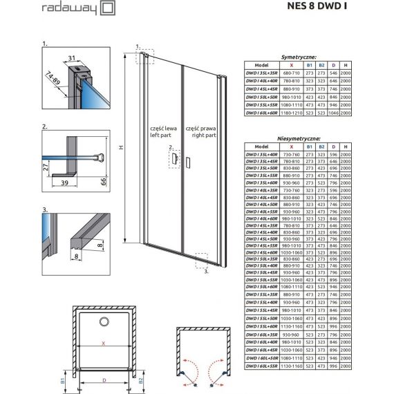 Душевая дверь Radaway Nes 8 Black DWD I 55L+45R 100 см (стекло 8 мм), черный/прозрачное