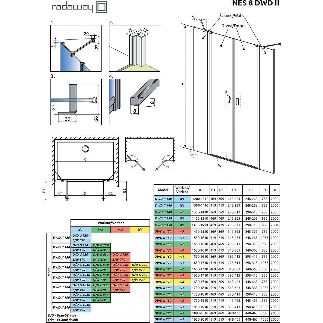 Душевая дверь Radaway Nes 8 Black DWD II 160 см W4 (стекло 8 мм), черный/прозрачное