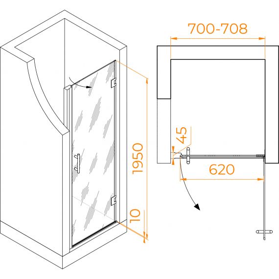 Душевая дверь RGW HO-011 70 см 350601107-11 (стекло 8 мм), хром/прозрачное