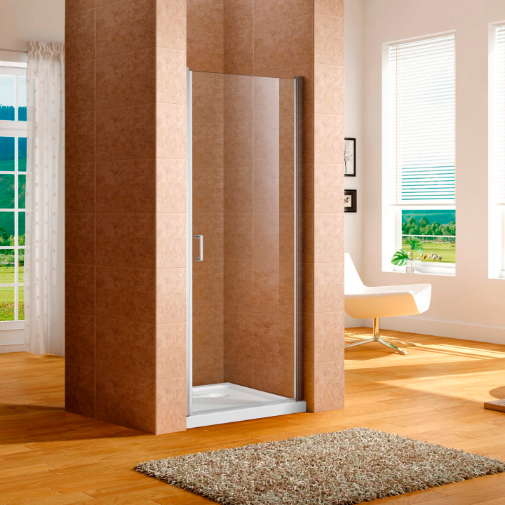 Душевая дверь Aquanet Cinetic, размер 900х1900 мм. Профиль хром, стекло прозрачное 6 мм. Габариты регулировки (895-915)х1900 мм.