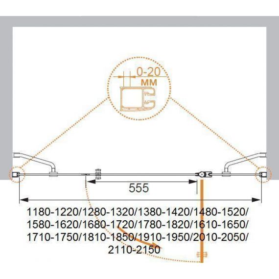 Регулировка ширины: предусмотрена за счет боковых профилей