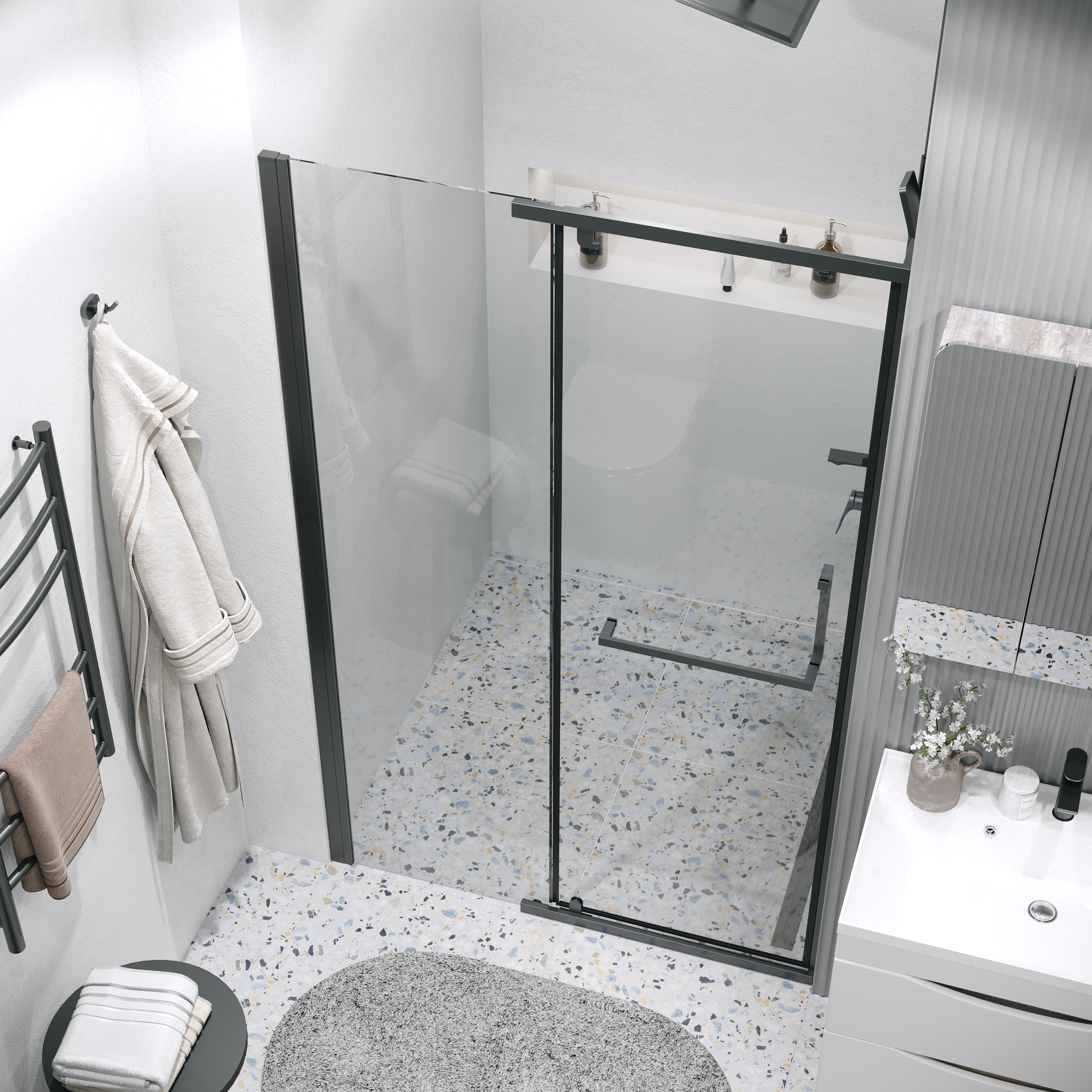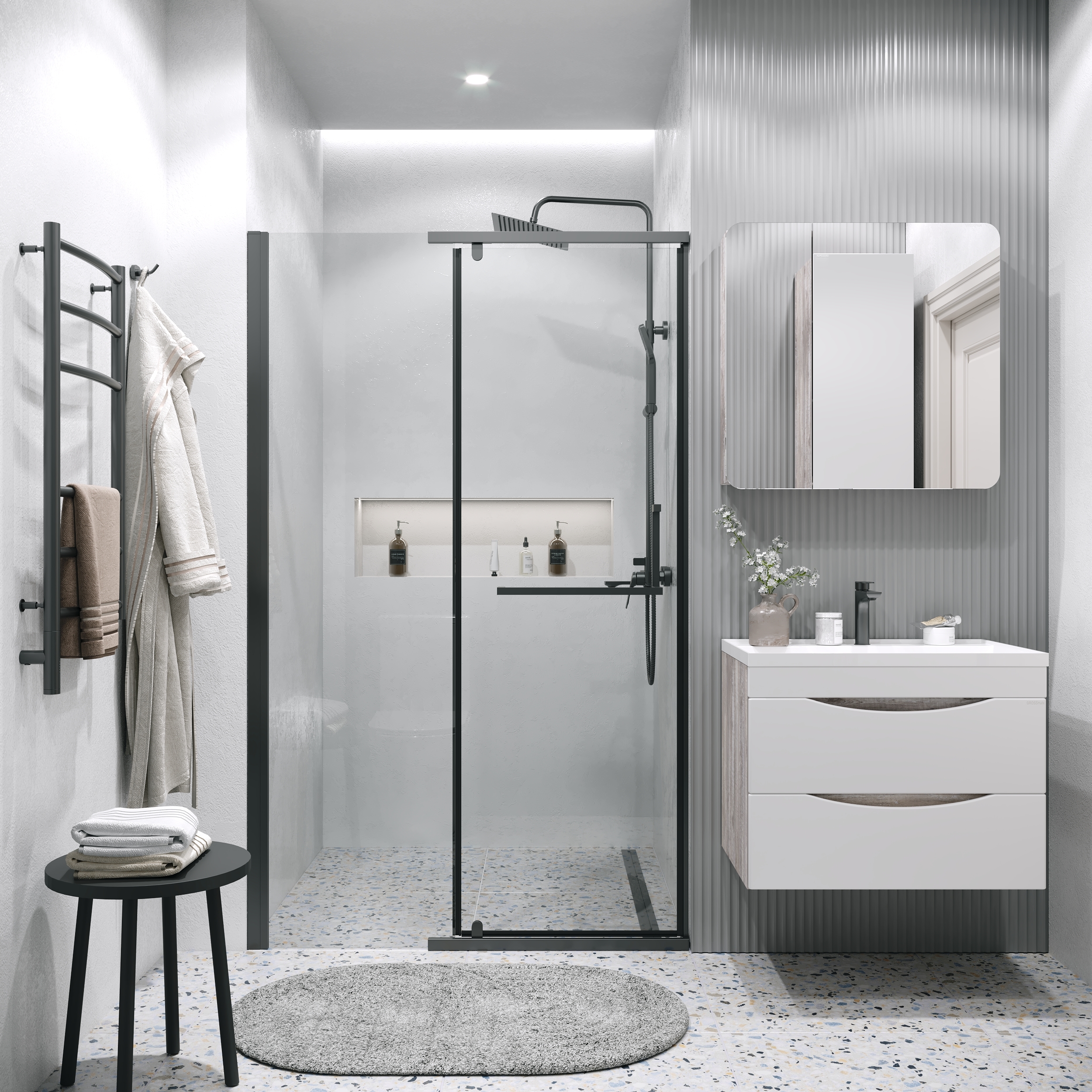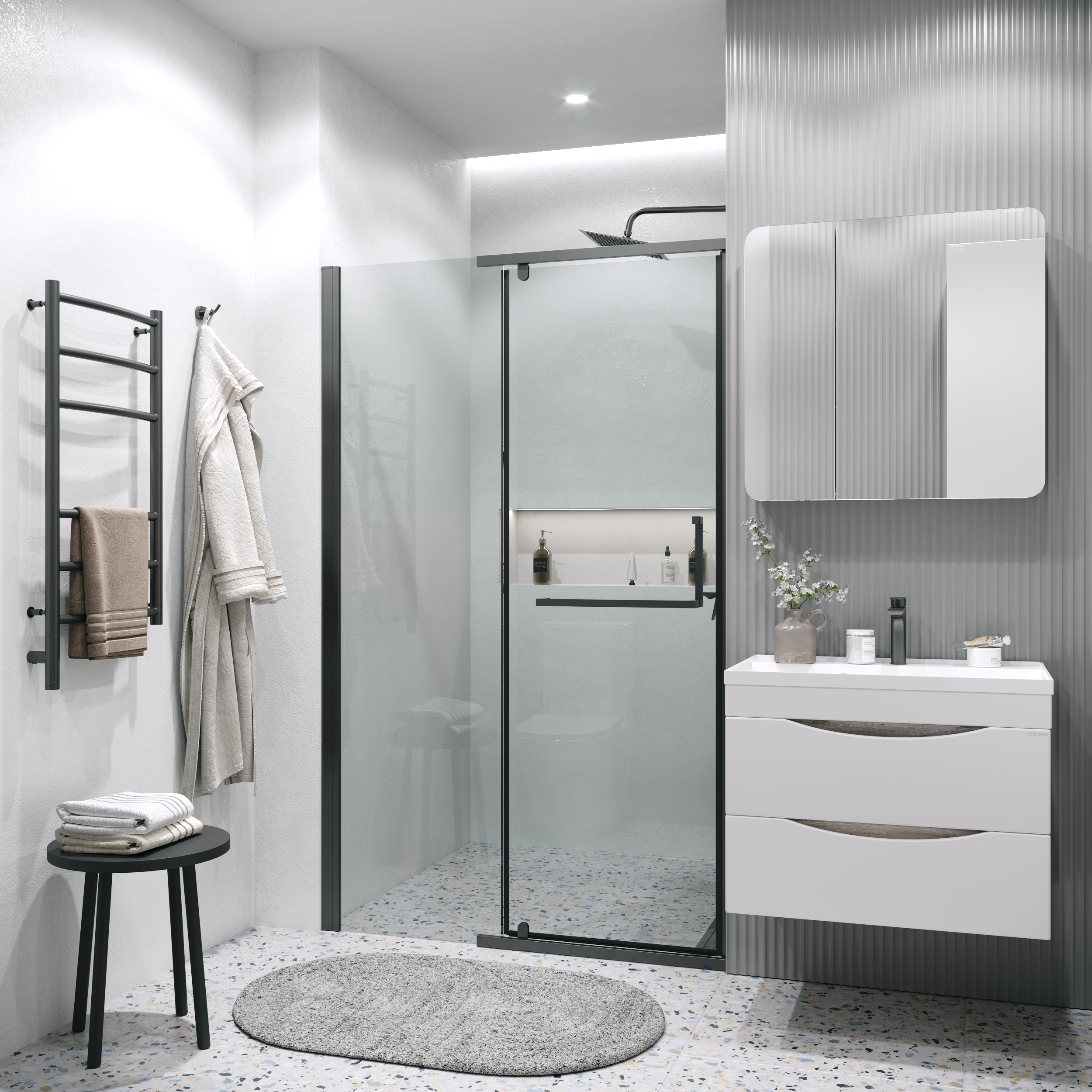 Душевая дверь Grossman Pragma 100.K33.03.110.21.00, размер 1100x1950 мм, профиль чёрный матовый, стекло прозрачное. Габариты регулировки (1090-1110)x1950 мм. Вход 556 мм.