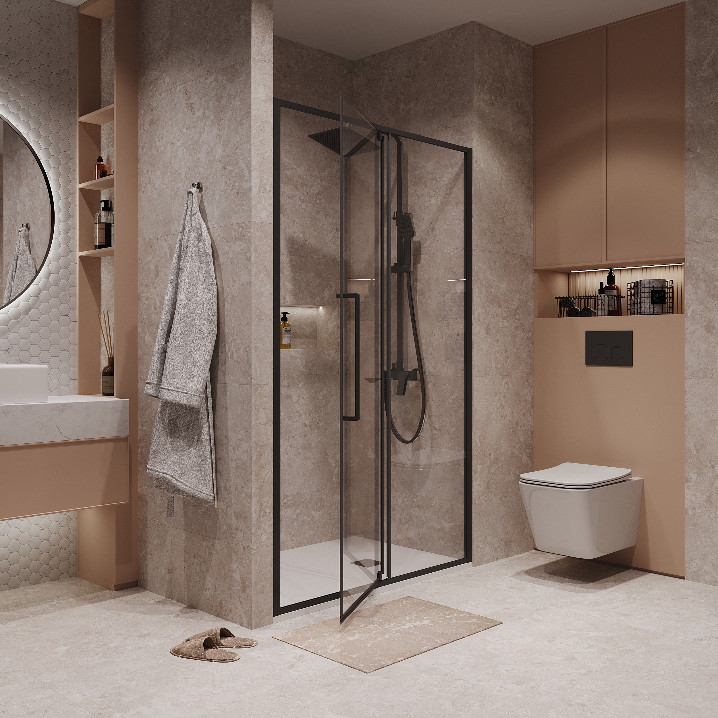 Душевая дверь Niagara Nova NG-85-12AB, размер 1200xx1950 мм, профиль чёрный матовый, стекло прозрачное. Габариты регулировки (1185-1215)x1950 мм, вход 680 мм.