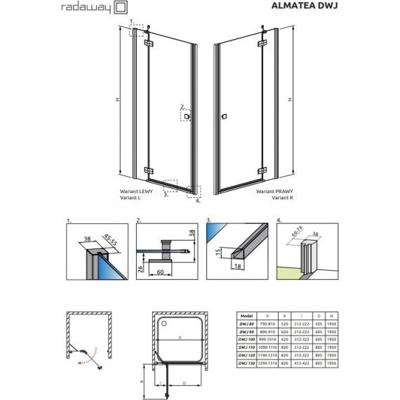 Душевая дверь Radaway Almatea DWJ R 80 см, хром/прозрачное