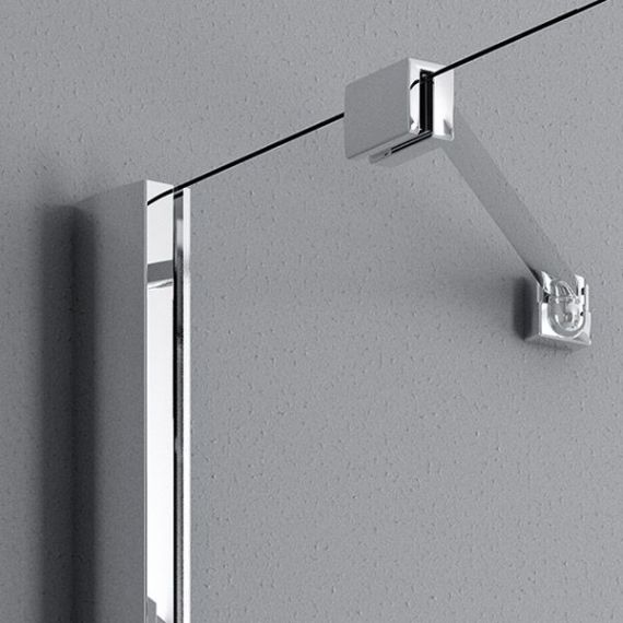 Стекло крепится к стене с помощью пристенных профилей (с регулировкой)