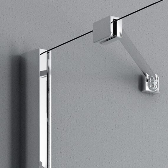 Стекло крепится к стене с помощью пристенных профилей (с регулировкой)