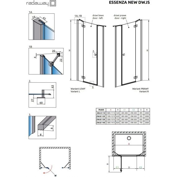 Душевая дверь Radaway Essenza New DWJS 130 см R, хром/прозрачное