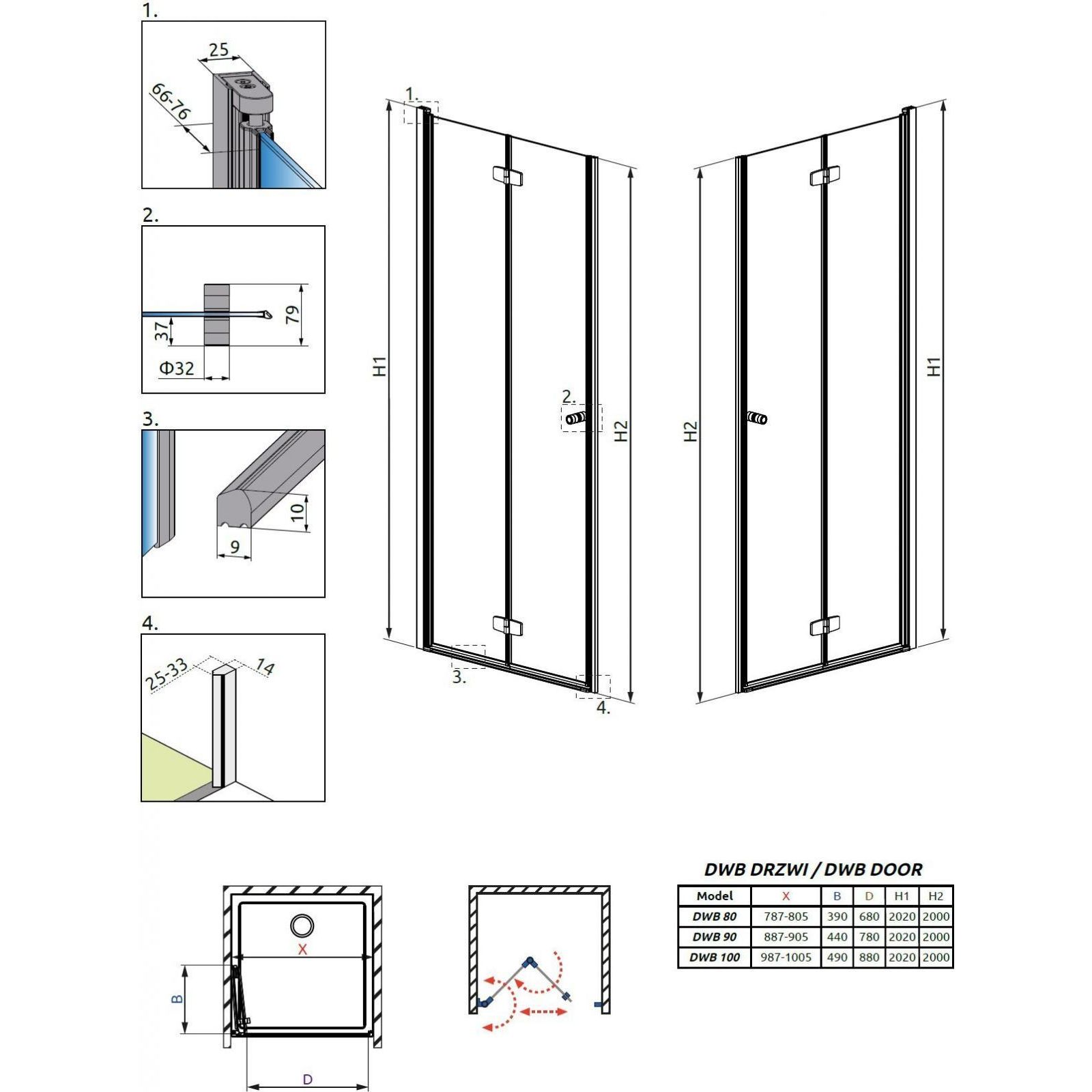 Душевая дверь Radaway Fuenta New DWB 100 см L/R, хром/прозрачное