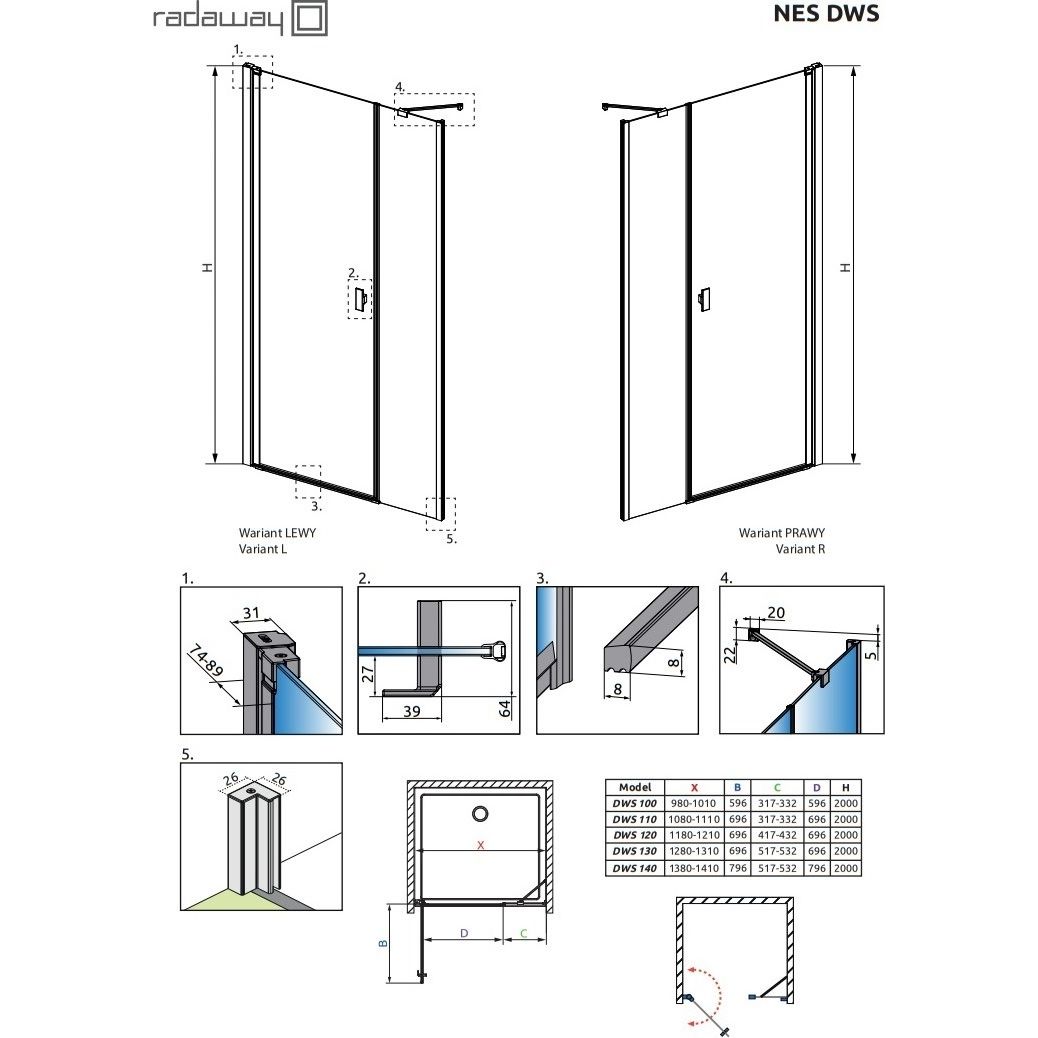 Душевая дверь Radaway Nes Black DWS 120 см 10028120-54-01R, черный/прозрачное