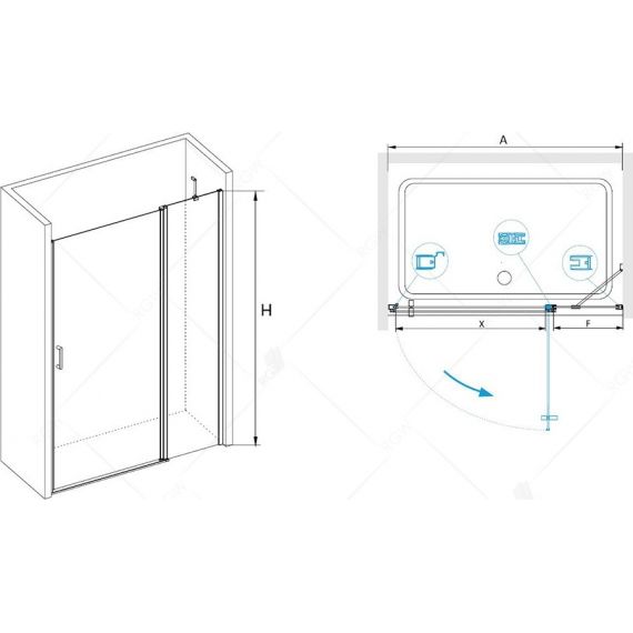 Два полотна стекла, стационарная и распашная дверь
