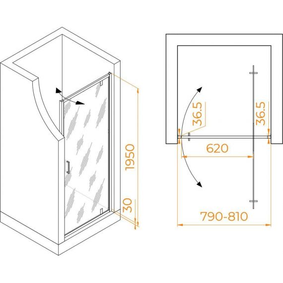 Душевая дверь RGW LE-102, размер 800х1950 мм, профиль хром, цвет стекла прозрачное, 6 мм. Габариты регулировки (790-810)х1950 мм, вход 620 мм. Душевой поддон приобретается отдельно.