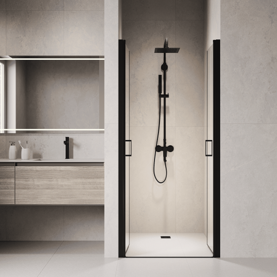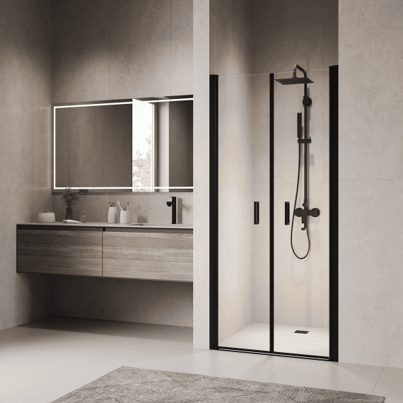 Душевая дверь RGW PA-104, размер 1000х1950 мм, профиль чёрный, стекло прозрачное 6 мм. Габариты регулировки (955-1005)х1950 мм. Вход 880 мм. Поддон приобретается отдельно.