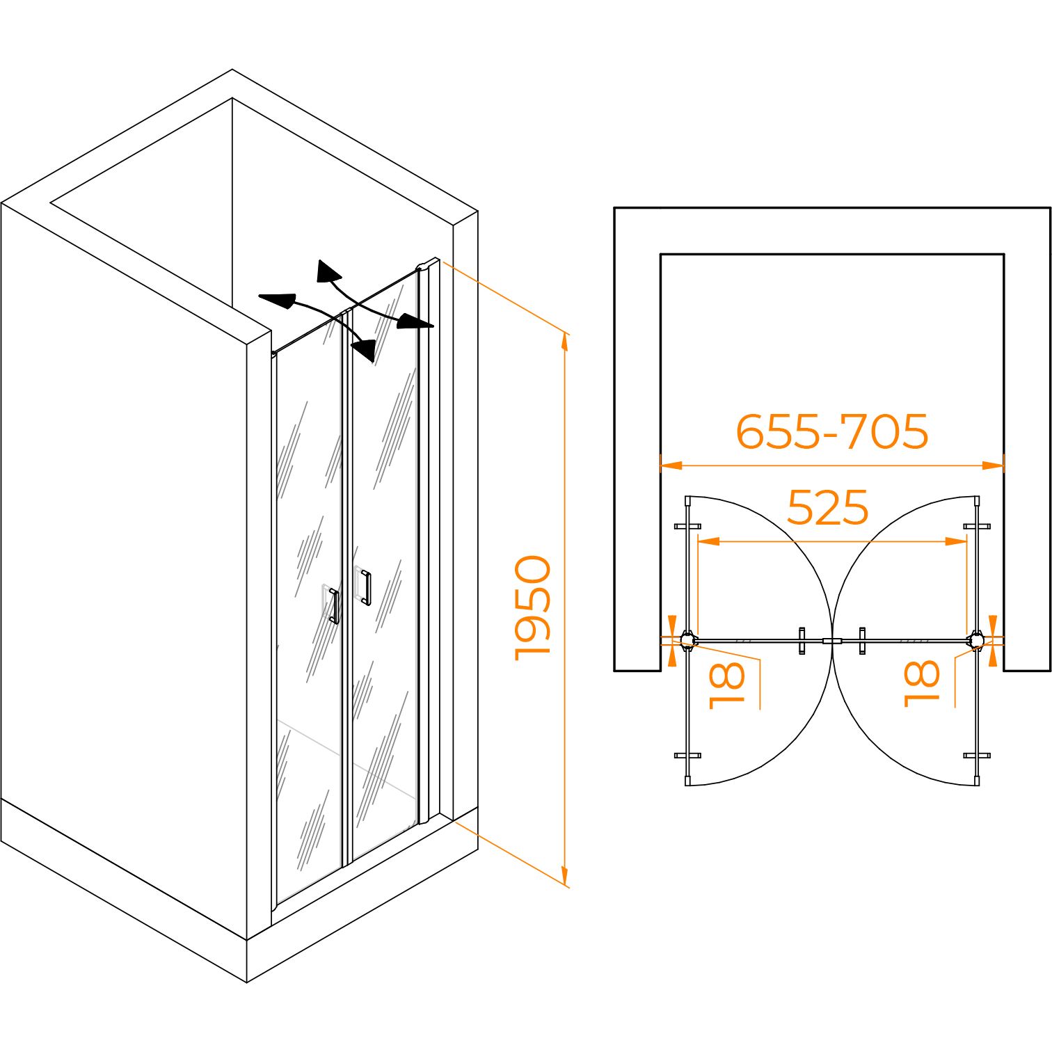 Душевая дверь RGW PA-104, размер 700х1950 мм, профиль чёрный, стекло прозрачное 6 мм. Габариты регулировки (655-705)х1950 мм. Вход 580 мм. Поддон приобретается отдельно.