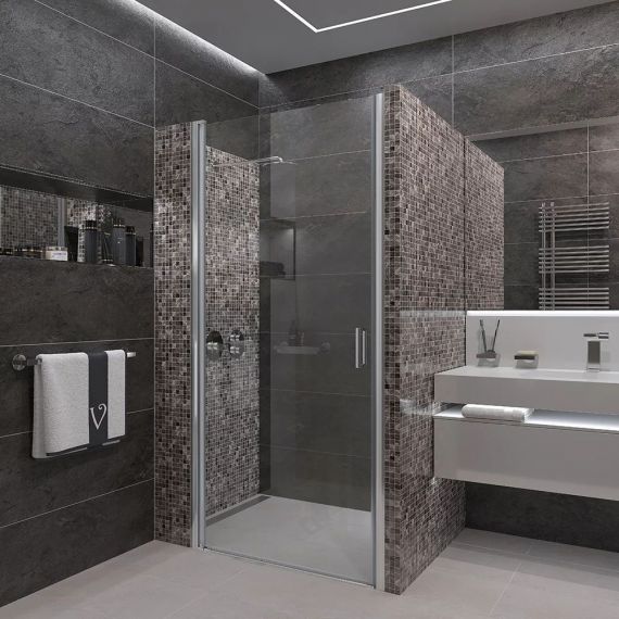 Душевая дверь Veconi VN-43, размер 90х195 см, профиль хром, стекло прозрачное, вход 770 мм. Габариты регулировки (890-930)х1950 мм.