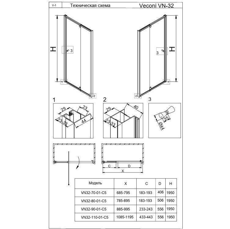 неподвижное 5 мм, дверь 6 мм