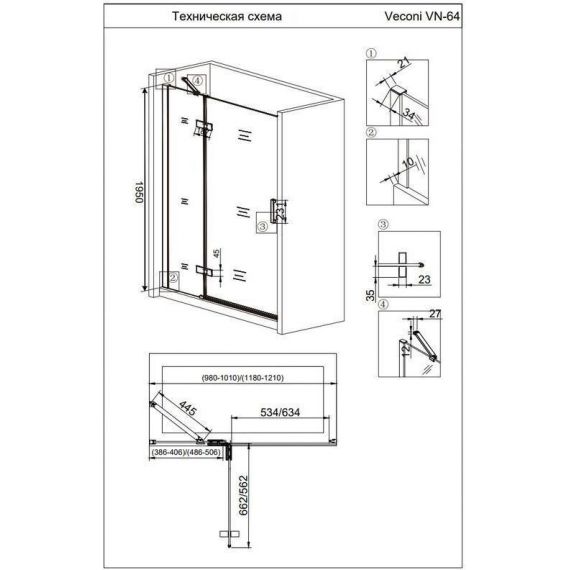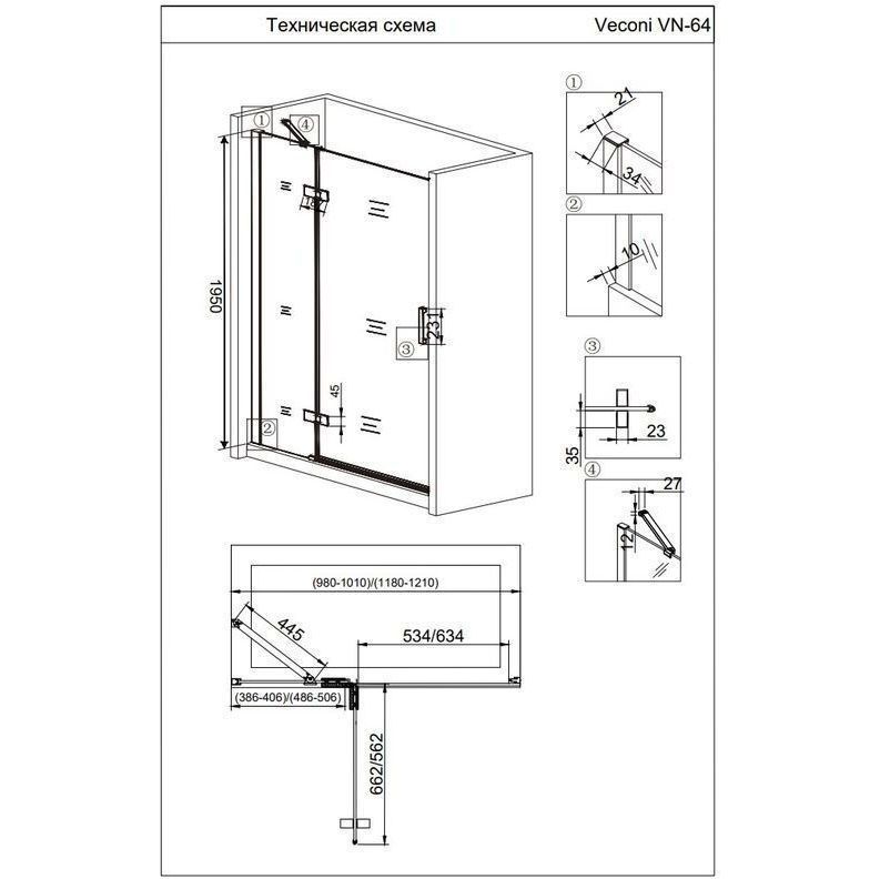 Душевая дверь Veconi Vianno 120 см VN64-120-01-19C3, хром/прозрачное