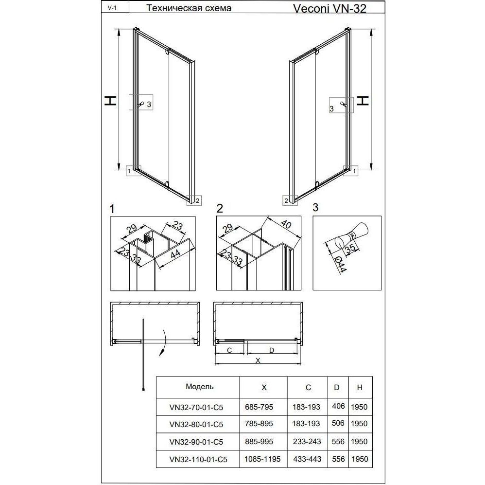 Душевая дверь Veconi Vianno 70 см VN32-70-01-C5, хром/прозрачное