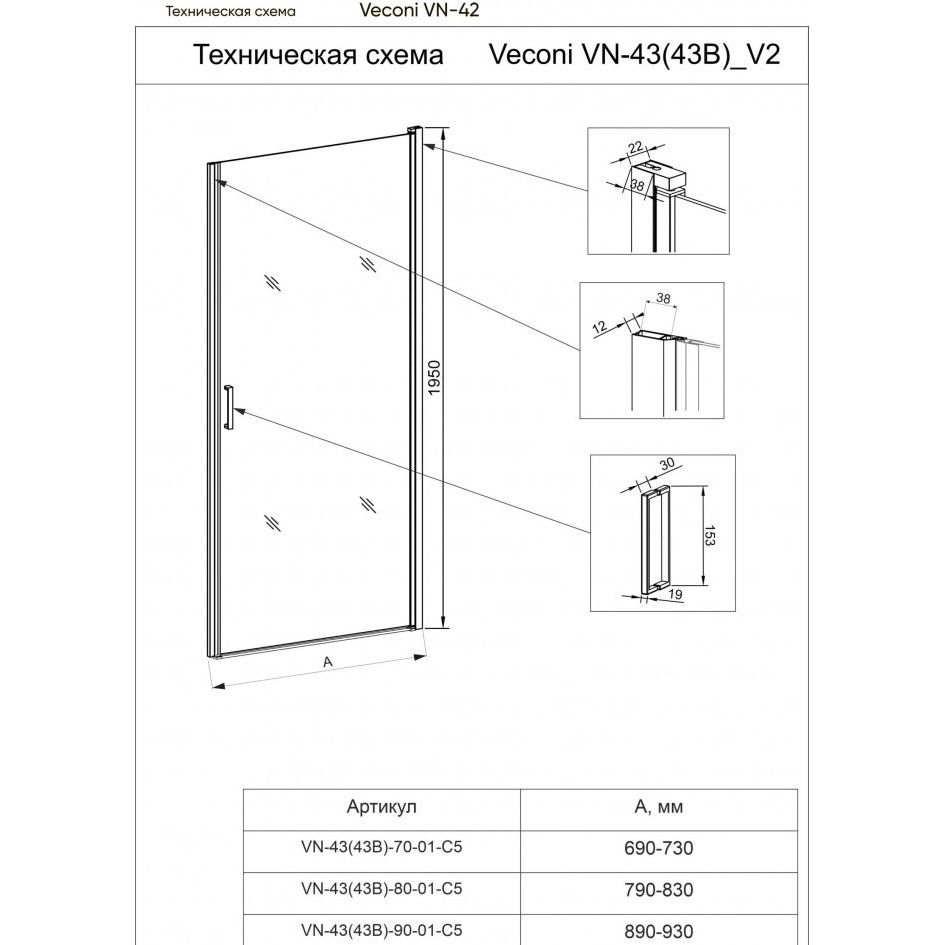 Душевая дверь Veconi Vianno 70 см VN43-70-01-C5, хром/прозрачное