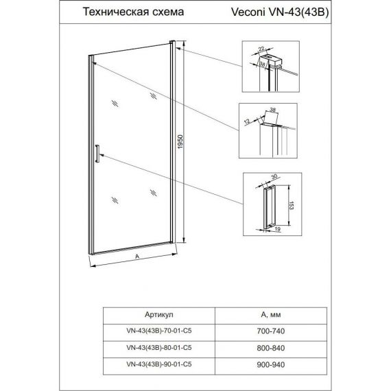Душевая дверь Veconi Vianno 80 см VN43B-80-01-C5, чёрный/прозрачное