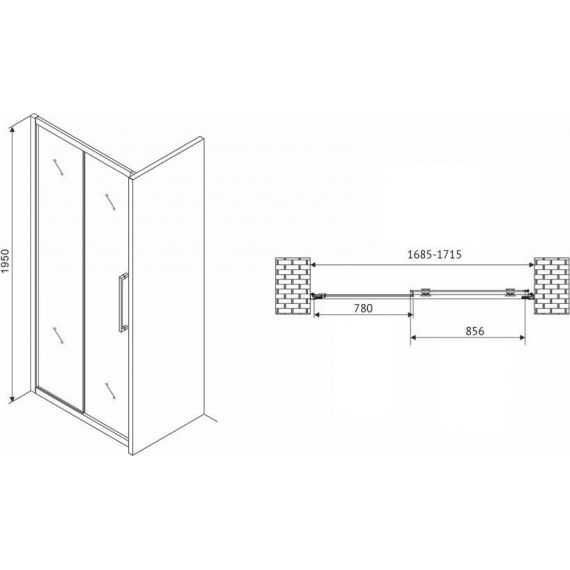 Душевая дверь Abber Schwarzer Diamant 170 см AG30170H, хром/прозрачное