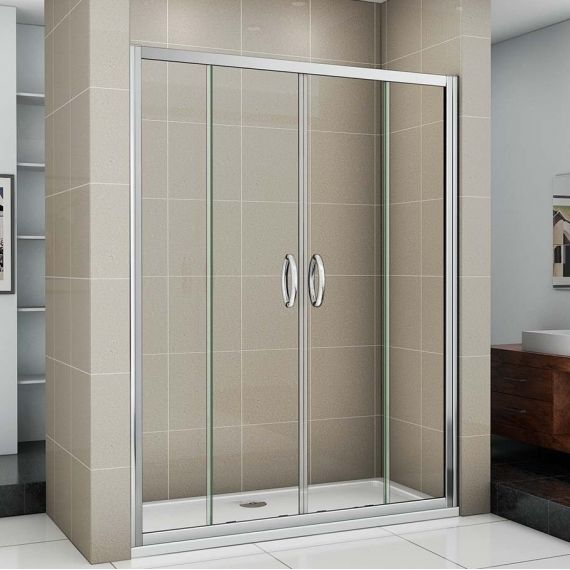 выполнены из 6-ти миллиметрового закаленного, безопасного стекла с подвижными дверками;