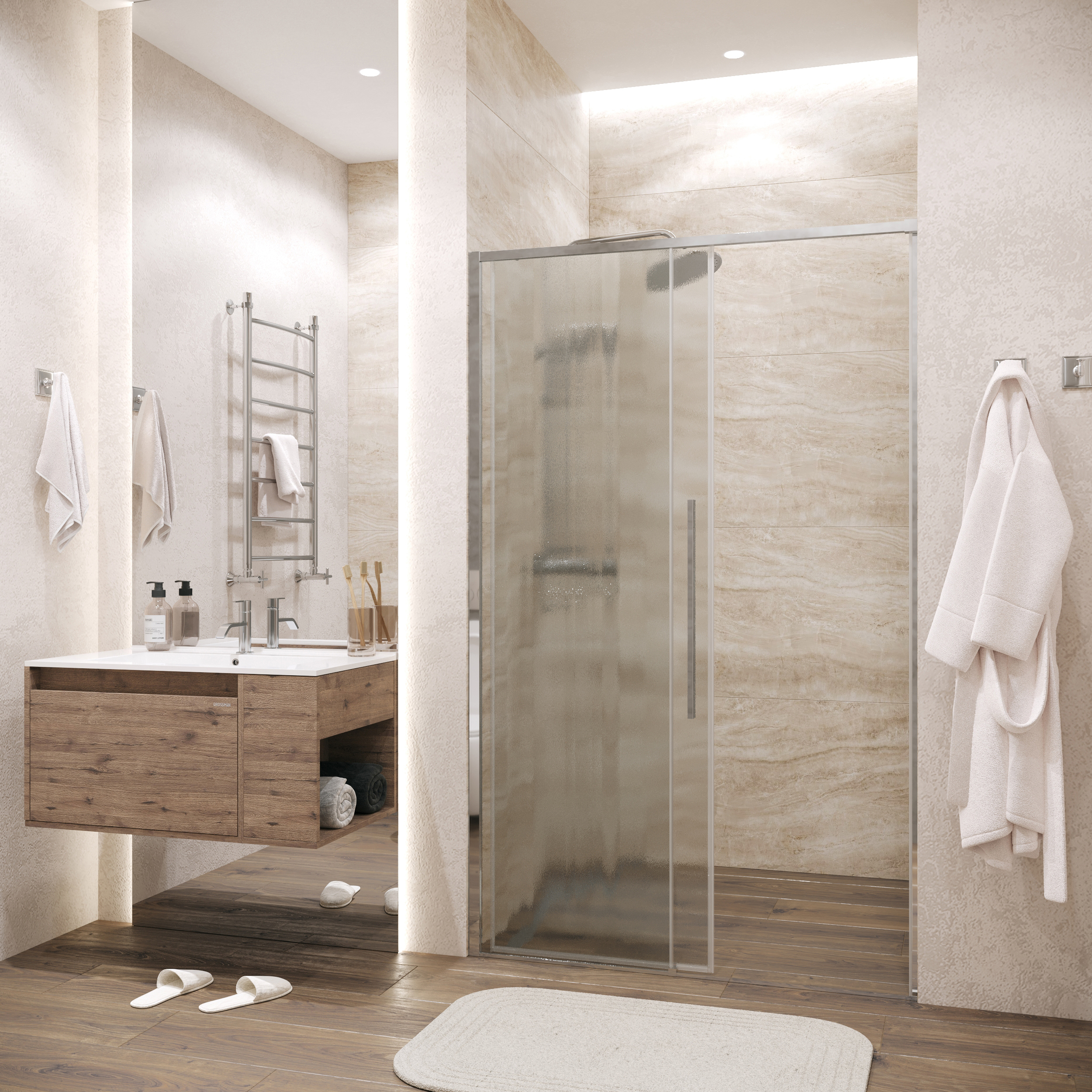 Душевая дверь Grossman Galaxy 100.K33.01.140.10.02, размер 1400x1950 мм, профиль хром, стекло шиншилла. Габариты регулировки (1390-1400)x1950 мм. Вход 610 мм.