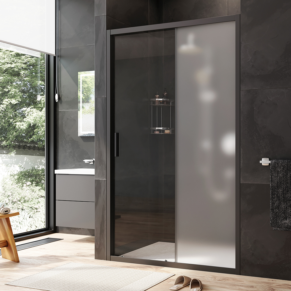 Душевая дверь отличается практичностью и функциональностью. Изделие произведено из ударопрочного закаленного стекла которое надежно фиксируется в нержавеющий алюминиевый профиль при помощи системы скрытых креплений. Ширина конструкции может быть увеличена путем регулирования каркаса на 20 мм что решает проблему неровных стен. Безупречную и плавную работу двери обеспечивают двойные металлические ролики на металлоподшипниках. Конструкция максимально герметична и предотвращает попадание воды на пол ванной комнаты.