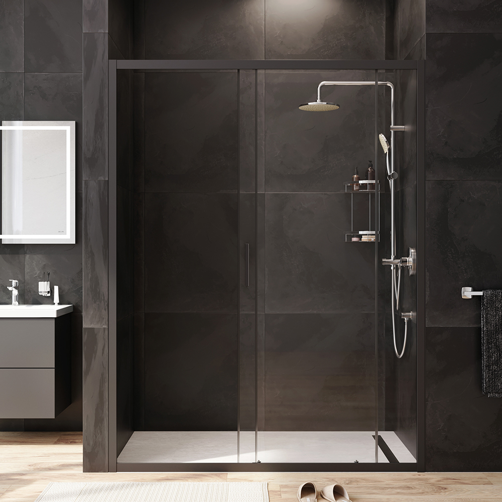 Душевая дверь отличается практичностью и функциональностью. Изделие произведено из ударопрочного закаленного стекла которое надежно фиксируется в нержавеющий алюминиевый профиль при помощи системы скрытых креплений. Ширина конструкции может быть увеличена путем регулирования каркаса на 20 мм что решает проблему неровных стен. Безупречную и плавную работу двери обеспечивают двойные металлические ролики на металлоподшипниках. Конструкция максимально герметична и предотвращает попадание воды на пол ванной комнаты.