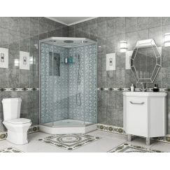Душевая кабина Loranto с поддоном 13 см, размер 100x100x215 мм, профиль хром, стекло с рисунком "мозайка" 4 мм. Материал задней стенки - стекло.