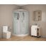 Двери и переднее стекло: Прозрачные 6 мм, двери зарываются плотно с помощью магнитной ленты, вода не выплёскивается так как установлены брызговики между дверью и неподвижной стенкой. Ручки дверей железные. Ролики стальные и надежные.