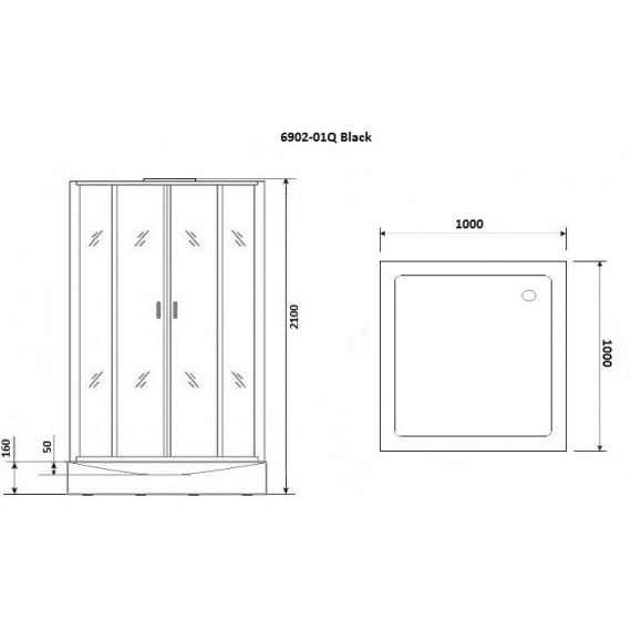 Двери и переднее стекло: Прозрачные 6 мм, двери зарываются плотно с помощью магнитной ленты, вода не выплёскивается так как установлены брызговики между дверью и неподвижной стенкой. Ручки дверей железные. Ролики стальные и надежные.