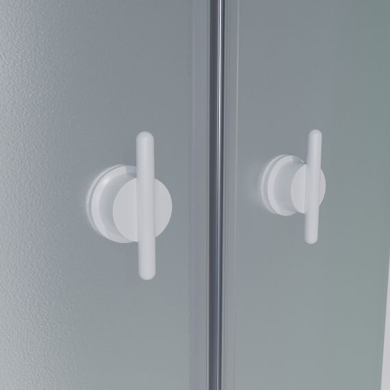 Двери и передние не подвижные стенки, сделаны из каленого стекла матовые белые.