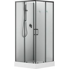 Душевое кабина Grossman, размер 900х1000х2150 мм, профиль чёрный, стекло прозрачное. Низкий поддон и сифон в комплекте.
