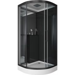 Душевое кабина Grossman, размер 900х1000х2150 мм, профиль чёрный, стекло прозрачное. Низкий поддон и сифон в комплекте.