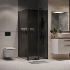 Душевое ограждение Niagara Nova NG-2823-34BLACK, размер 900x900x1950 мм, профиль чёрный матовый, стекло тонированное. Габариты регулировки (885-900)x(885-900)x1950 мм, вход 490 мм.