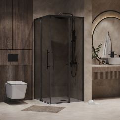 Душевое ограждение Veconi Rovigo 800x800x1900 мм, профиль черный матовый, стекло тонированное 5 мм, ширина входа 435 мм. Габариты регулировки (780-800)х(780-800)х1900 мм.