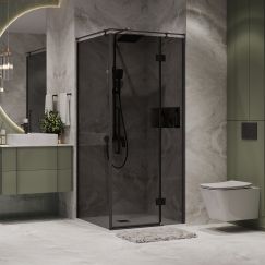 Душевое ограждение Grossman Galaxy 300.K33.01.1010.21.10, размер 1000x1000x1950 мм, профиль чёрный матовый, стекло тонированное. Габариты регулировки (980-990)x(980x990)x1950 мм. Вход 523 мм.