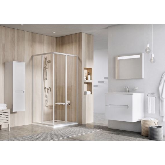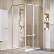Душевое ограждение Ravak Supernova SRV2-S+SRV2-S-80, размер 80х80х195 см c угловым входом. Профиль - белый, витраж - Pearl, вход 431 мм.