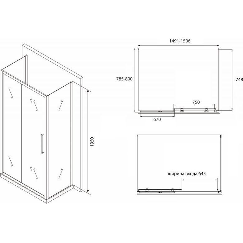 Душевое ограждение Abber Schwarzer Diamant 150х80 см AG30150BH-S80B-S80B, черный/прозрачное