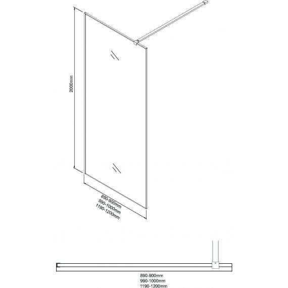 Душевая перегородка Niagara Nova NG-781-10BLACK, размер 1000xx2000 мм, профиль чёрный матовый, стекло матовое. Габариты регулировки (990-1000)x2000 мм, кронштейн в комплекте 70-120 см.